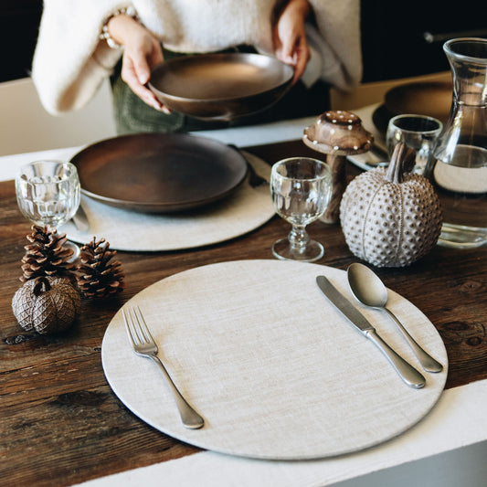 Acquista i sottopiatti sfoderabili Misalù: disco in fibre di legno riciclato HDF,...