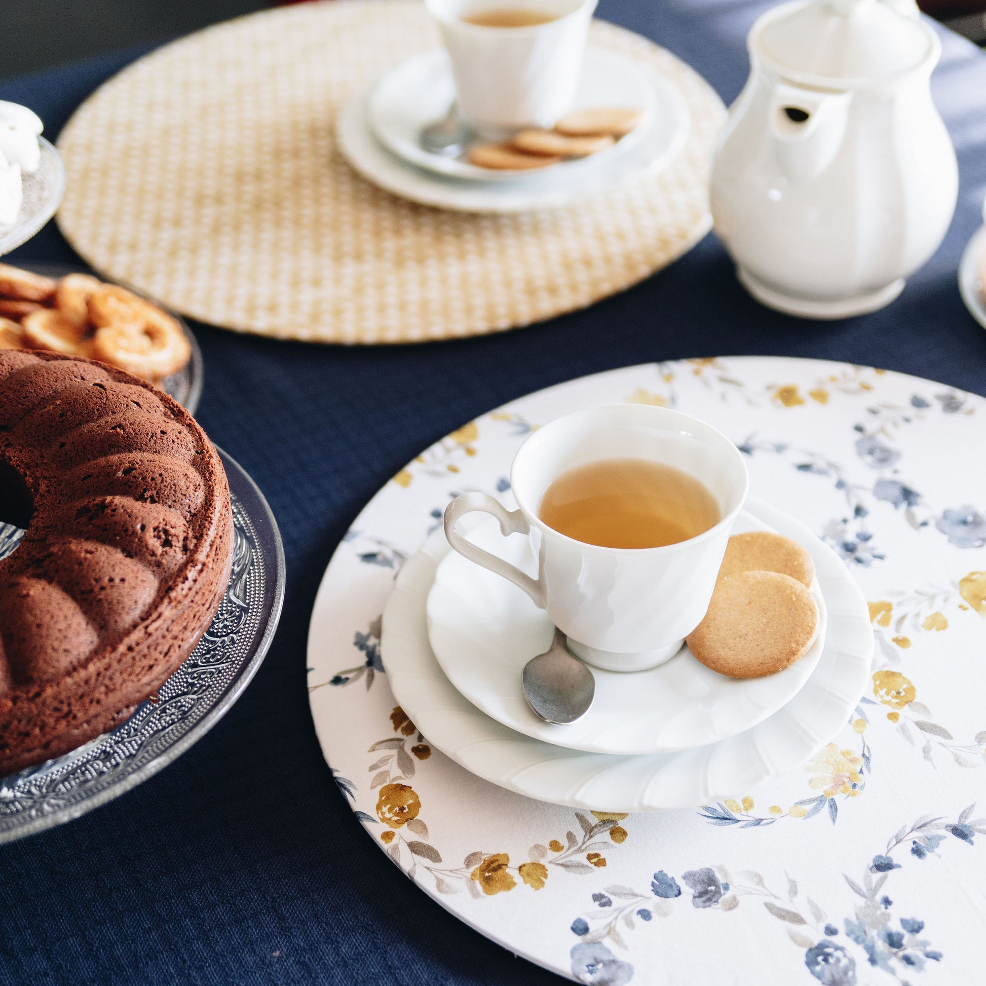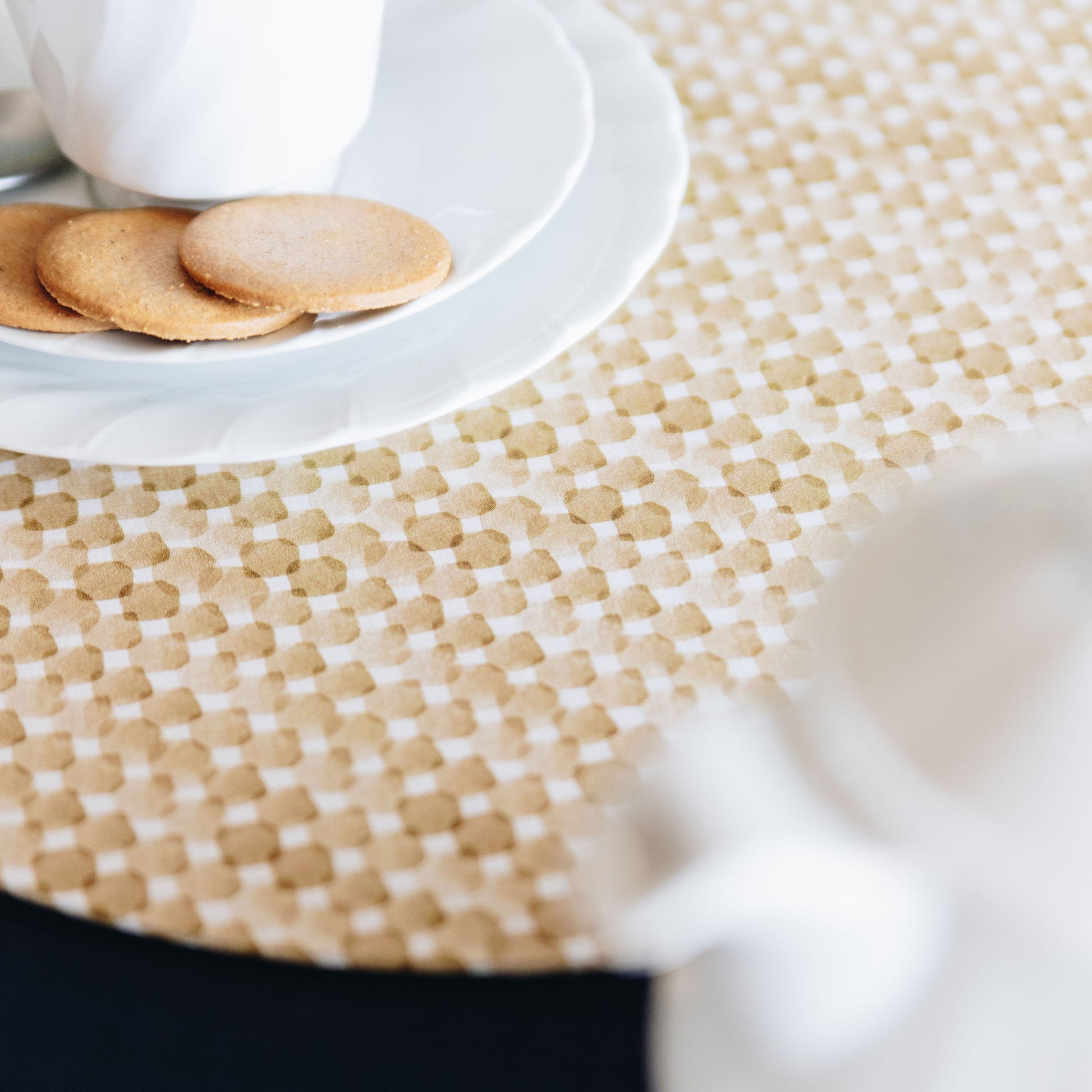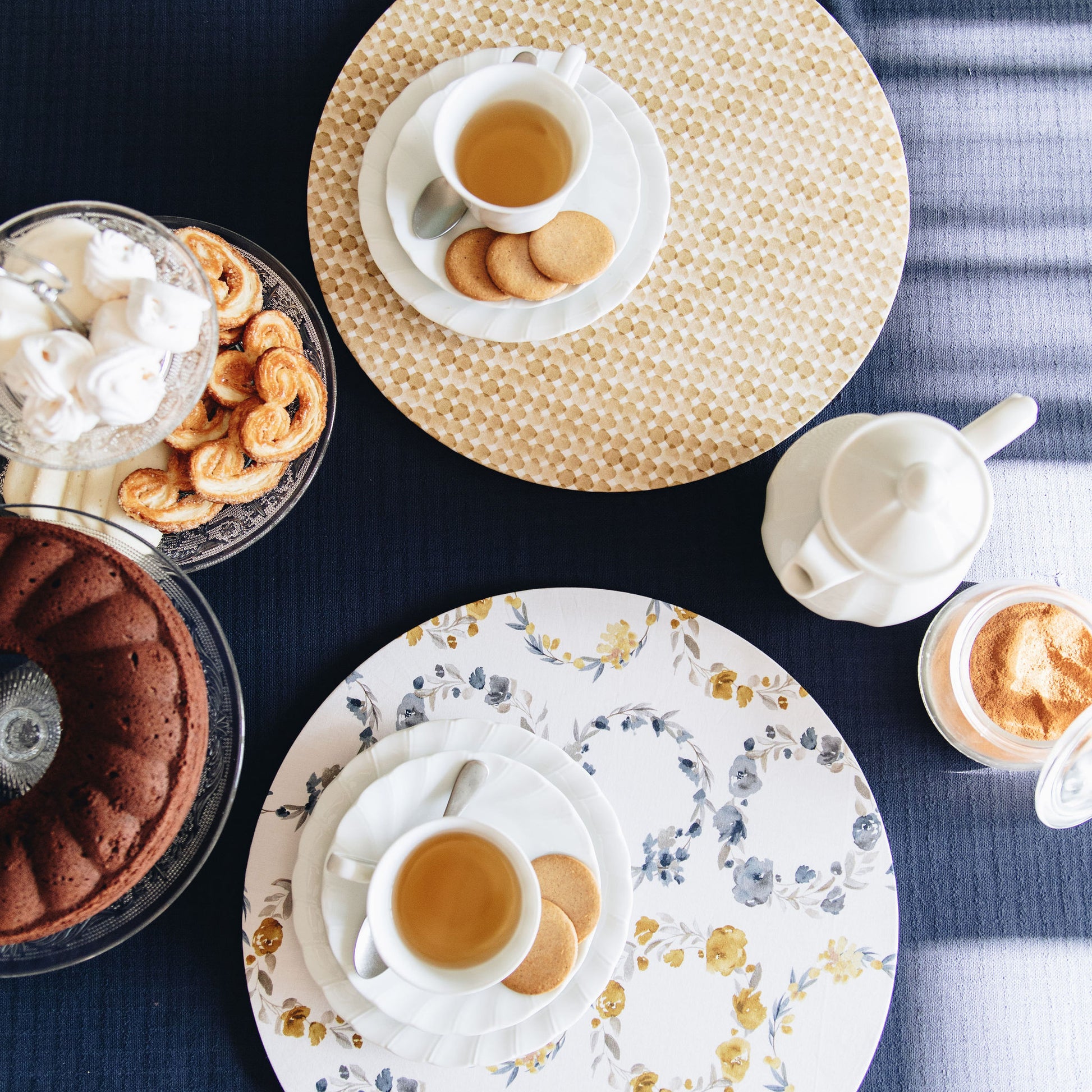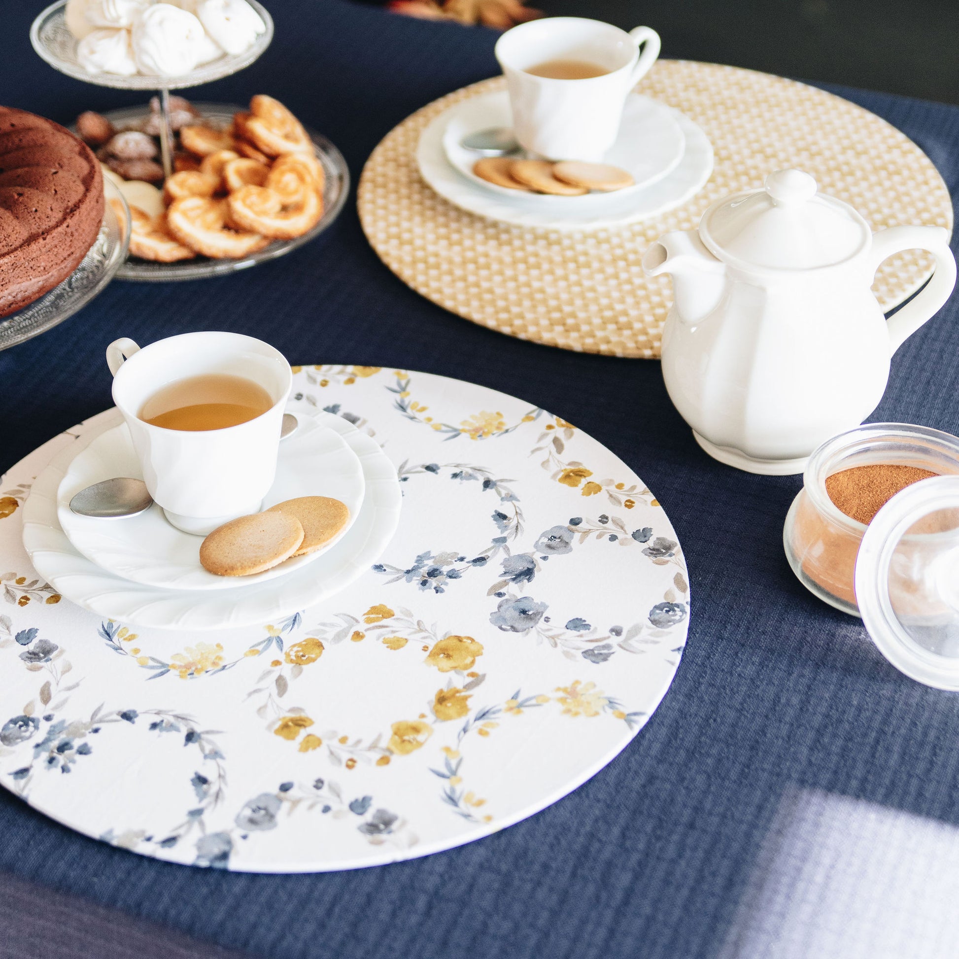 Il set Regina Victoria abbina due tessuti nella nuance del color senape, si possono acquistare solo le singole fodere dello stesso disegno o abbinarle con tovaglie/runner in tinta unita, io ho scelto i toni del blu per far esaltare i disegni dei sottopiatti.