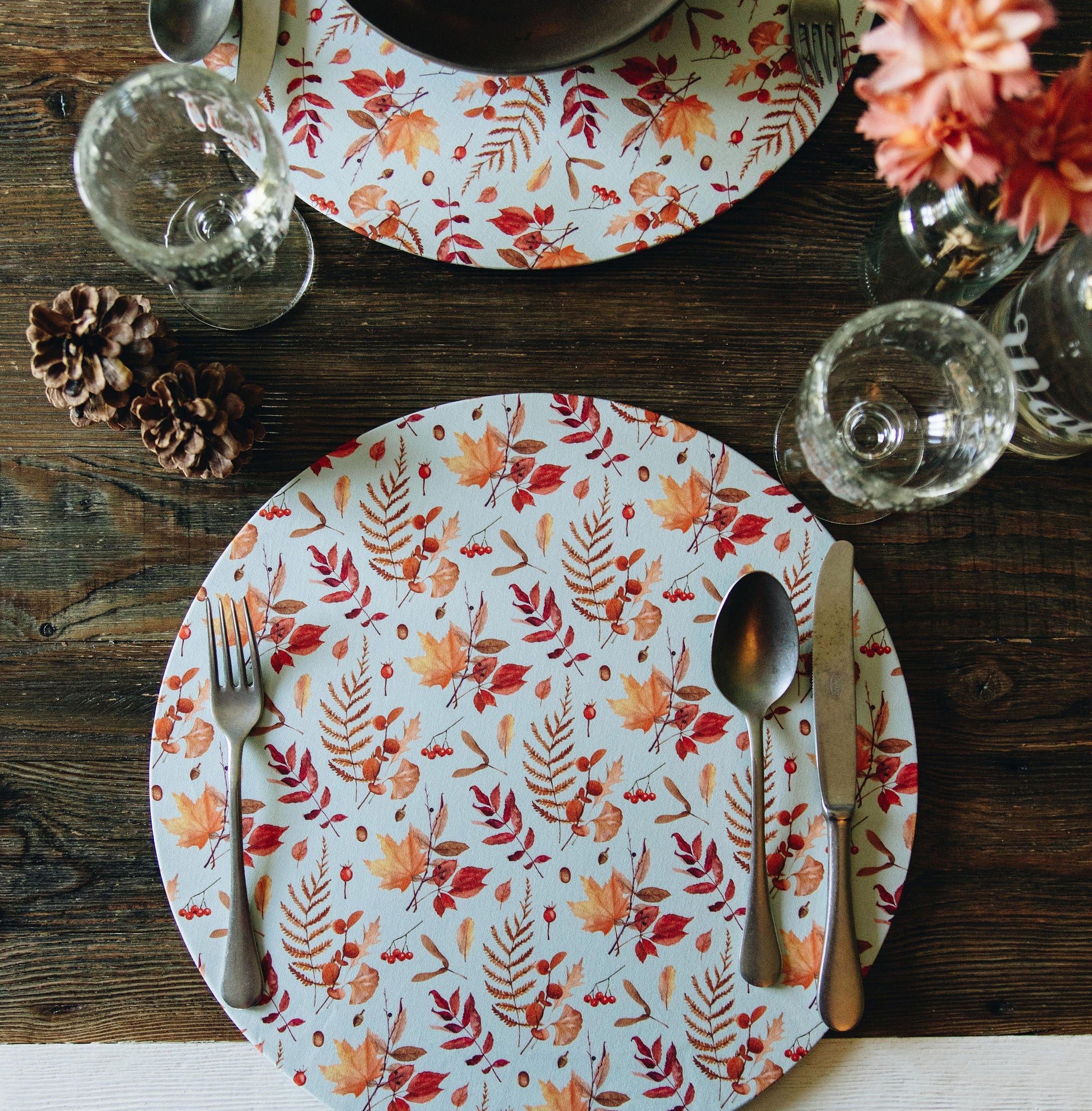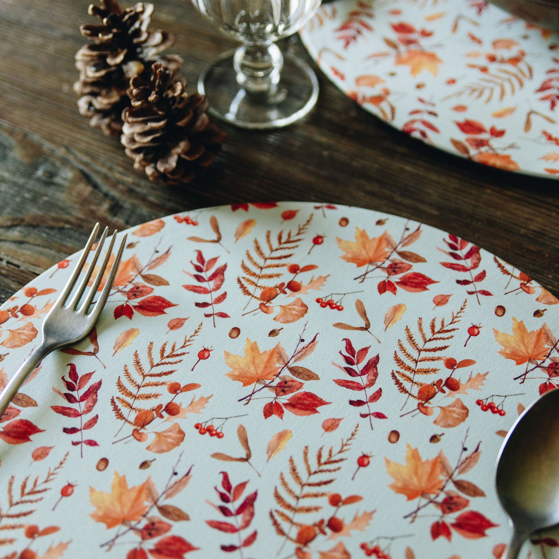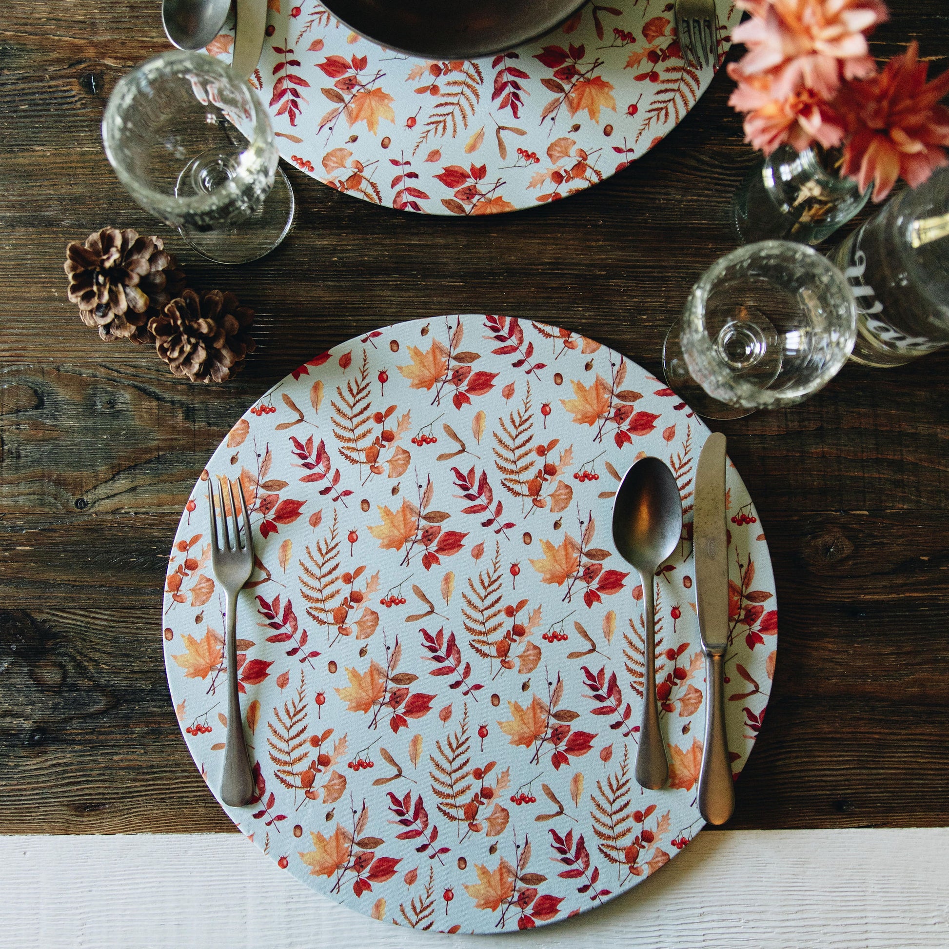 Sottopiatto Autumn in Stars Hollow – porta in tavola l’autunno magico della cittadina di Stars Hollow. Il motivo raffigurante foglie e bacche rosse e aranciate sembra fluttuare su uno sfondo celeste carta da zucchero, creando un’illusione di leggerezza e movimento. Ogni curva del pattern guida lo sguardo tra forme e colori, aggiungendo ritmo e armonia alla tua tavola.