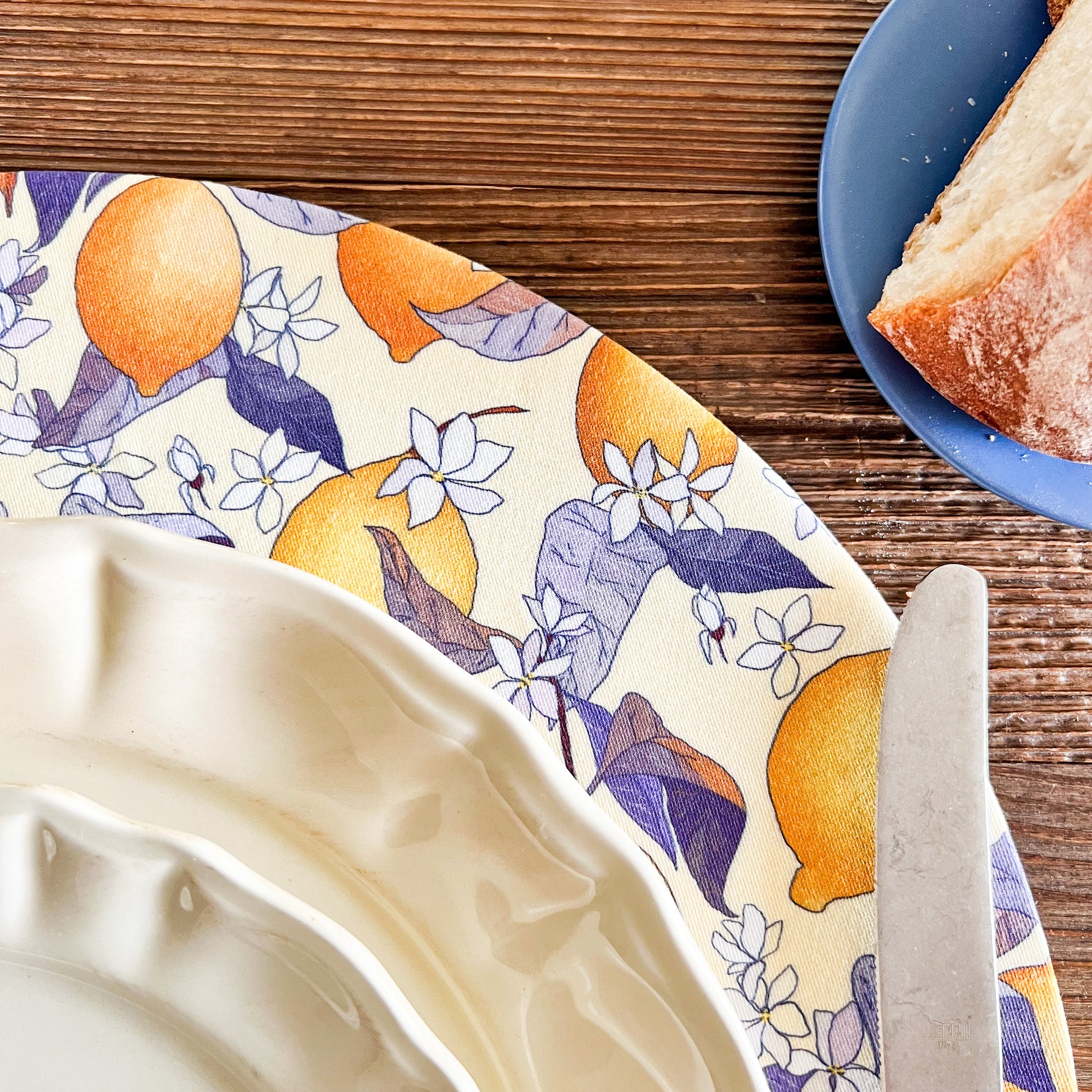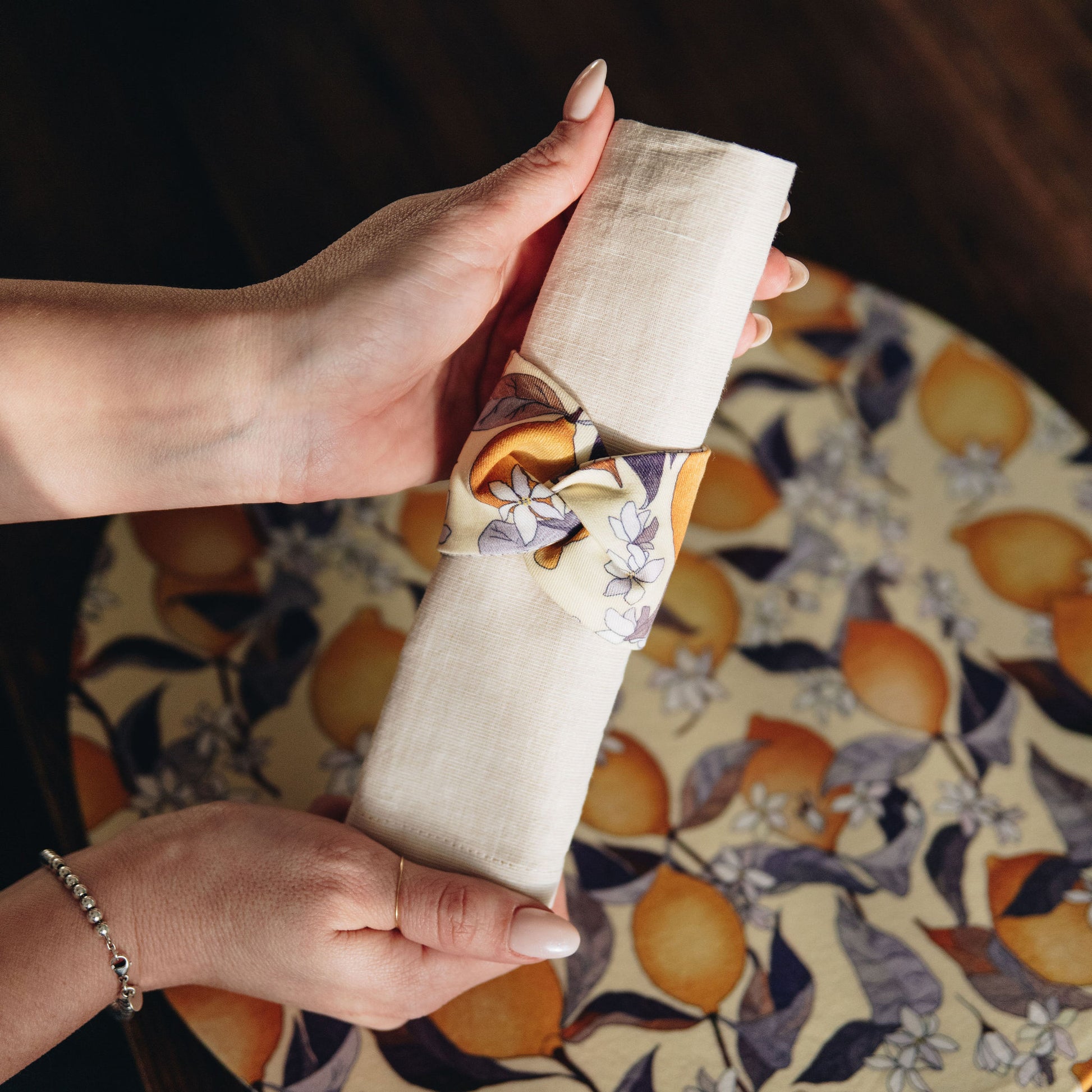 Portatovagliolo realizzato in tessuto, intreccio e con doppia fodera.