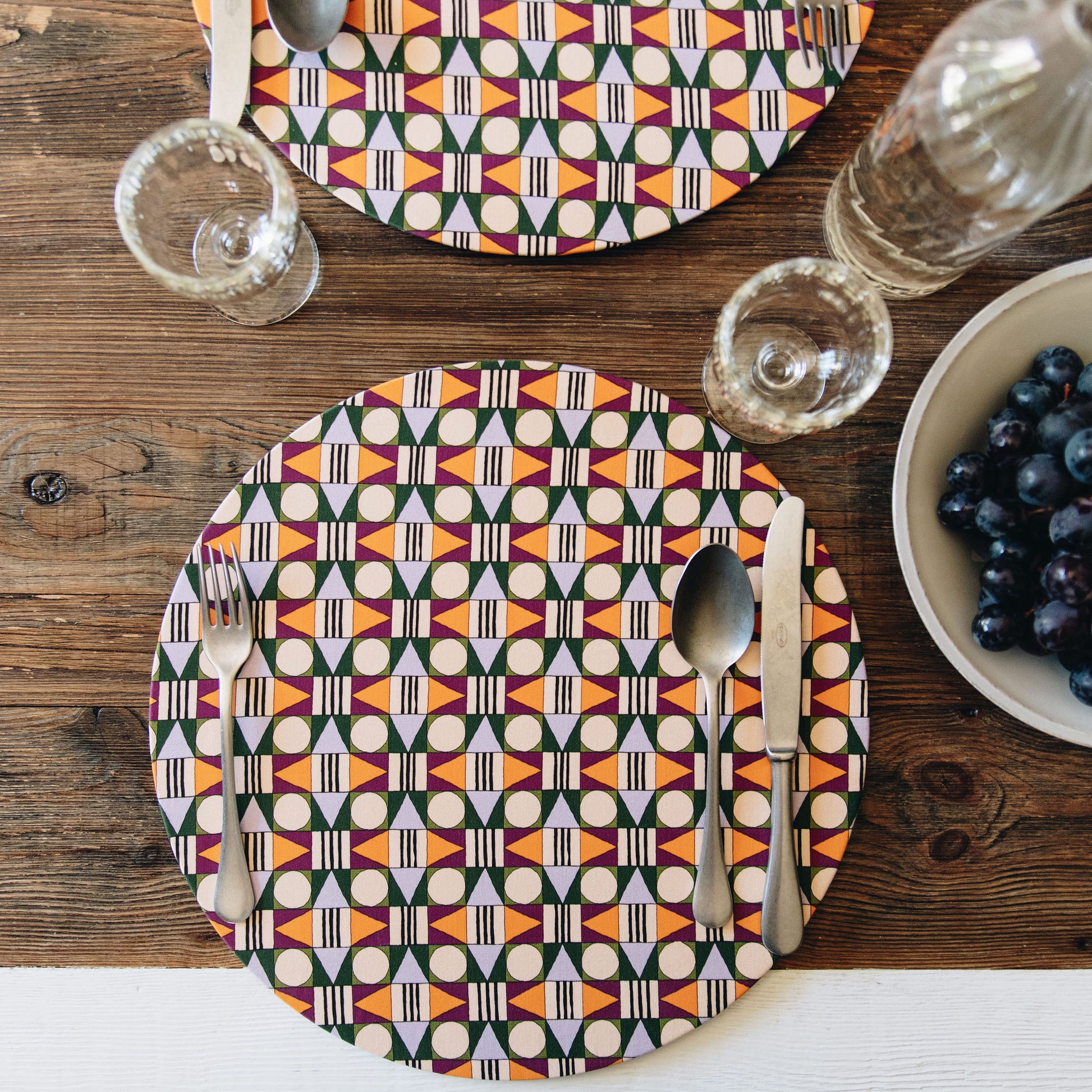 Il sottopiatto Retrò è una vera festa per gli occhi: linee geometriche e colori pop si intrecciano come un vinile che gira sul giradischi, creando ritmo e un’energia contagiosa.
