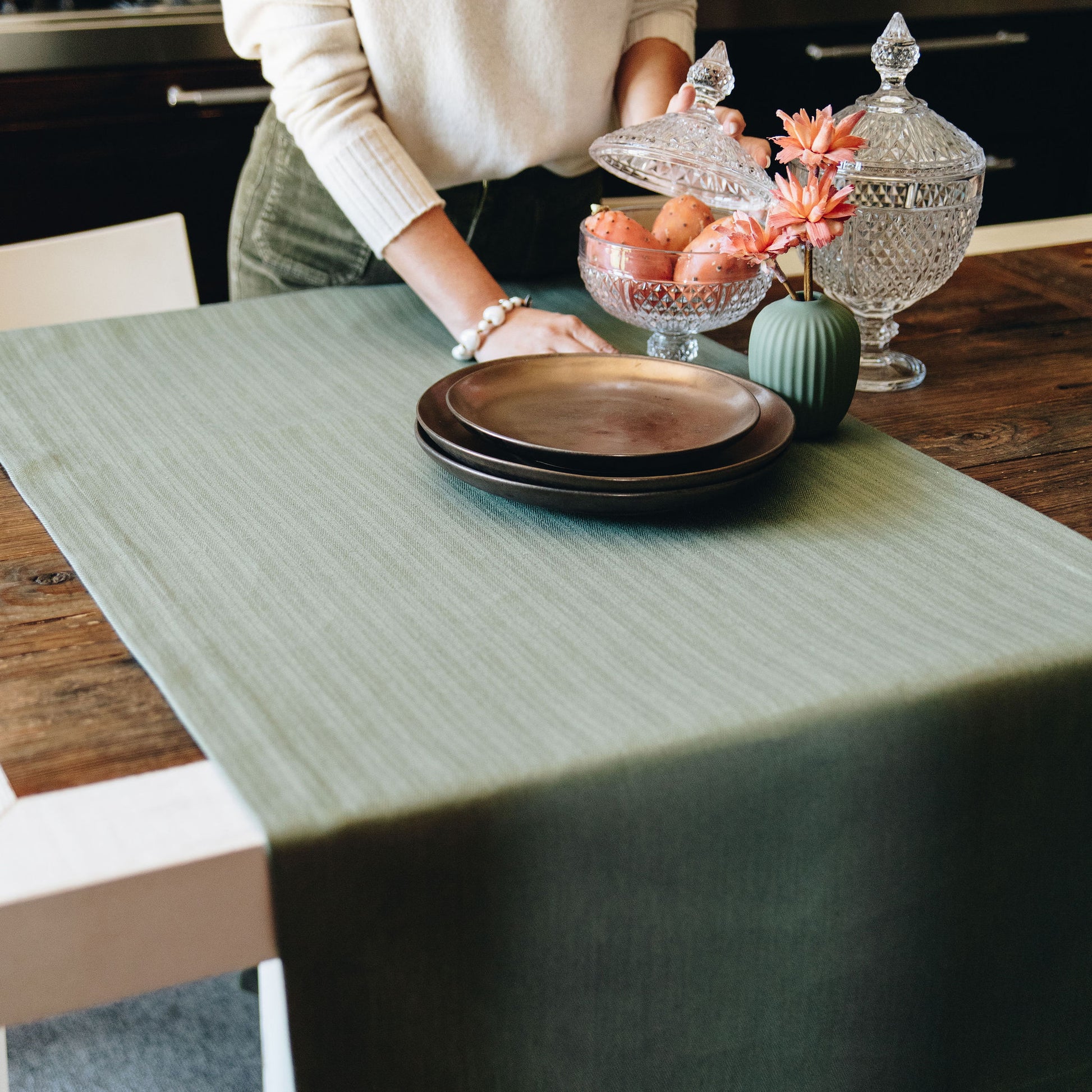 Un angolo lettura illuminato dalla luce della finestra, con una poltrona avvolgente e morbida. Il runner Salbei si adagia sul tavolino, accogliendo tazze fumanti di caffè o cioccolata, accarezza il tuo libro, portando la classe in ogni momento di pausa.